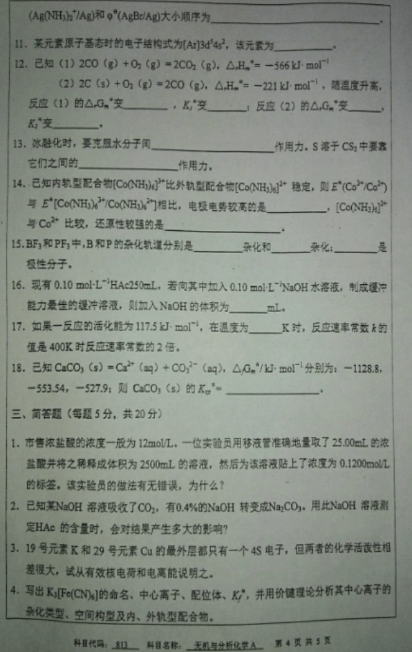 专业课半岛在线注册资料 本站小编 半岛在线注册 2019-12-142013年中国矿业大学无机与分析化学半岛在线注册真题