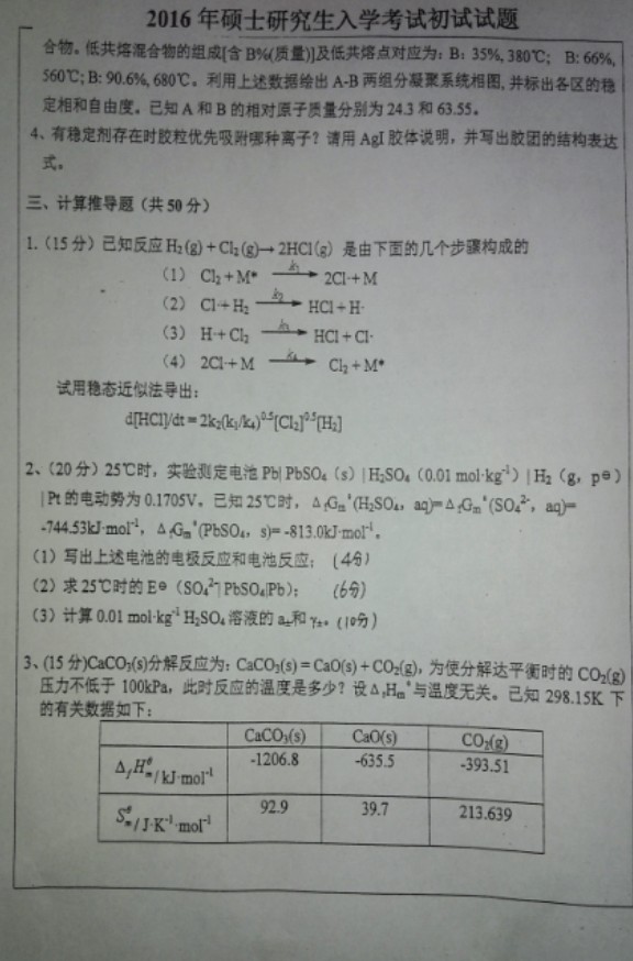 化工原理选择填空题精选 ① 物理吸收操作属于____过程,是一组分通过另一静止组分的____扩散。 ② 当平衡线在所涉及的范围内是斜率为m的直线时,则1/K =1/k +___1/k 。 ① 在填料塔中用清水吸收混合气中NH ,当水泵发生故障上水量减少时,气相总传质 单元数N ______ (A)增加; ...专业课半岛在线注册资料 本站小编 半岛在线注册 2019-12-142015中国矿业大学物理化学半岛在线注册真题