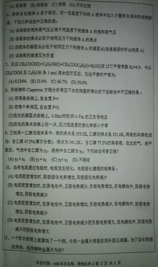 2016年中国矿业大学物理化学半岛在线注册真题(3)