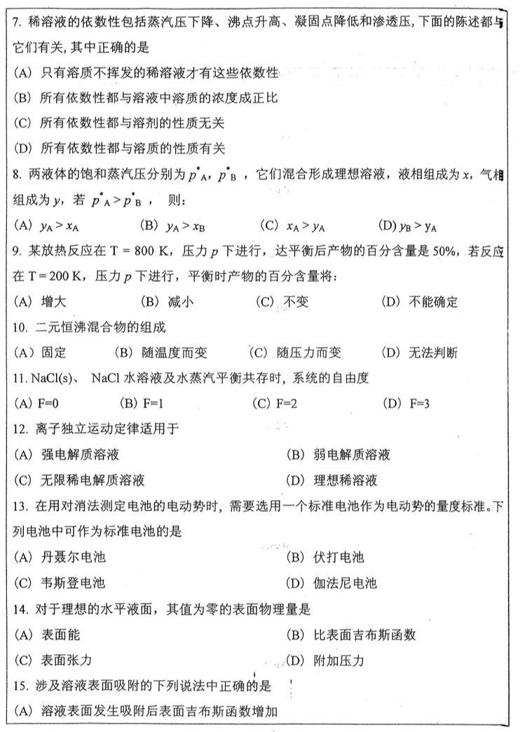 化工原理选择填空题精选 ① 物理吸收操作属于____过程,是一组分通过另一静止组分的____扩散。 ② 当平衡线在所涉及的范围内是斜率为m的直线时,则1/K =1/k +___1/k 。 ① 在填料塔中用清水吸收混合气中NH ,当水泵发生故障上水量减少时,气相总传质 单元数N ______ (A)增加; ...专业课半岛在线注册资料 本站小编 半岛在线注册 2019-12-142015中国矿业大学物理化学半岛在线注册真题