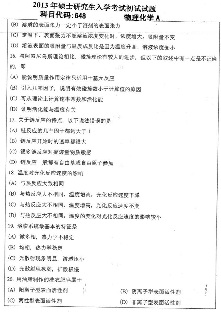 中国矿业大学2013年物理化学半岛在线注册真题(3)