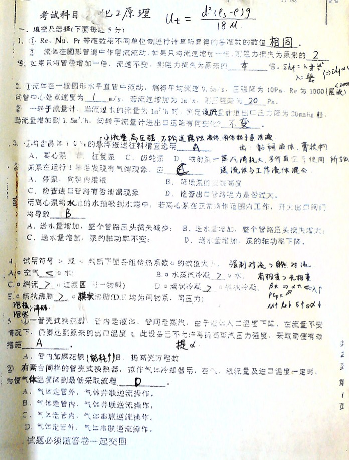 中国矿业大学1999-2012年化工原理半岛在线注册真题答案