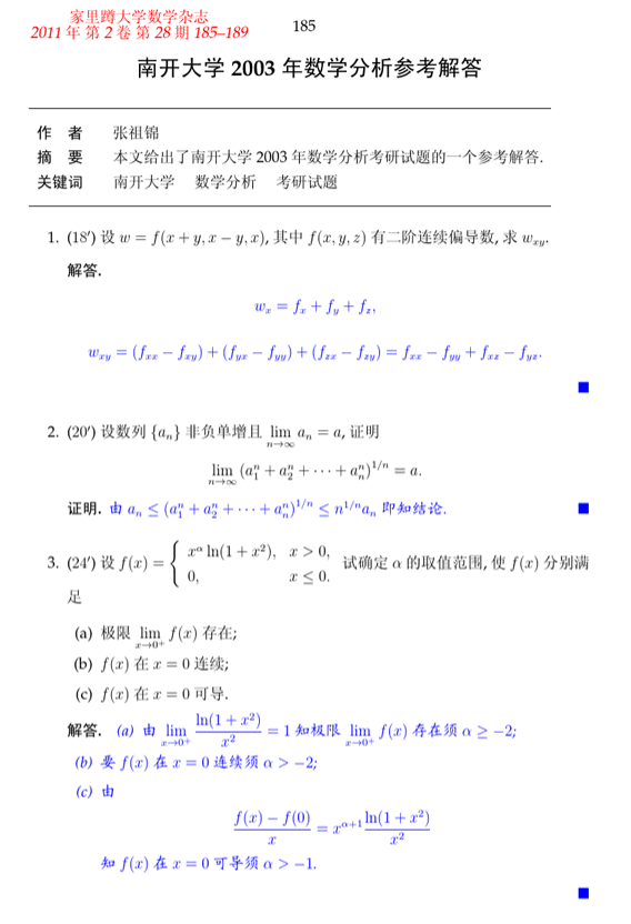 南开大学2000-2010年数学分析半岛在线注册试题解答(13)