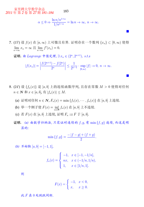 南开大学2000-2010年数学分析半岛在线注册试题解答(20)