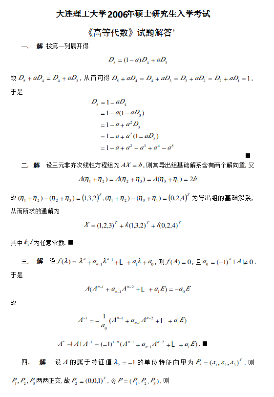 2000-2009年大连理工大学高等代数半岛在线注册试题(18)