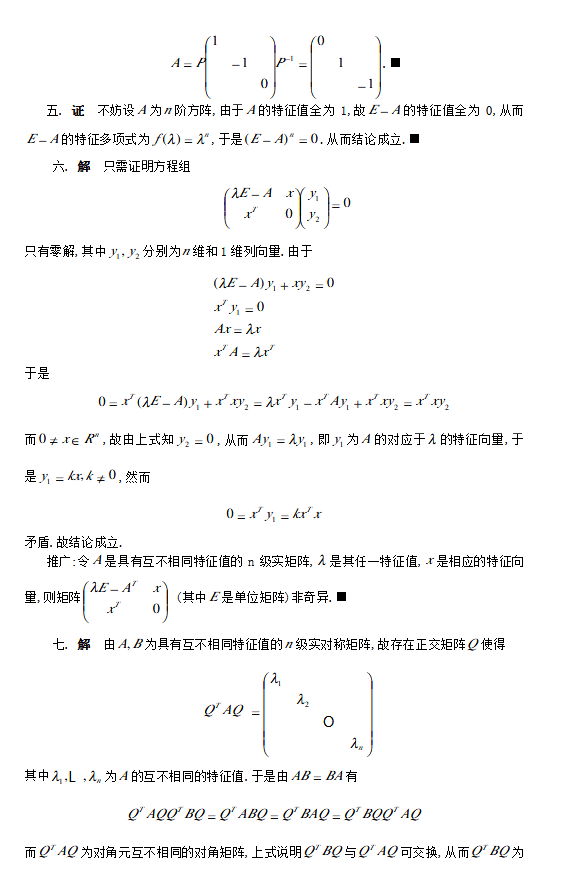 2000-2009年大连理工大学高等代数半岛在线注册试题(19)