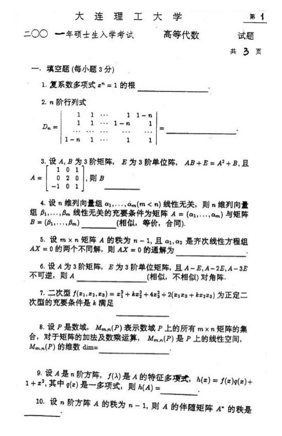 2000-2009年大连理工大学高等代数半岛在线注册试题(4)