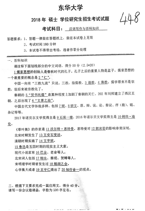 2012年硕士学位研究生招生考试试题