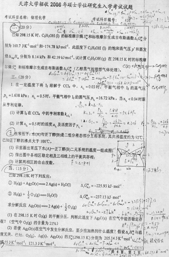 天津大学2006年物理化学半岛在线注册试题(2)