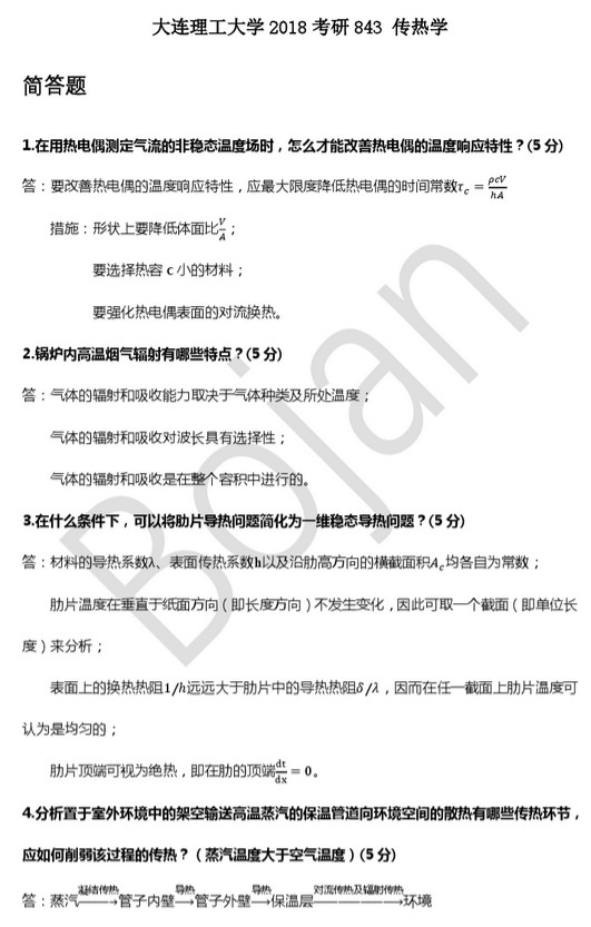 2018年大连理工大学843传热学半岛在线注册试题带答案