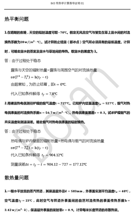 大连理工大学843传热学半岛在线注册历年真题汇总分类——计算推导证明