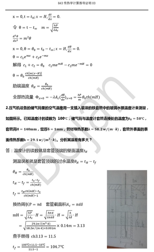大连理工大学843传热学半岛在线注册历年真题汇总分类——计算推导证明(12)