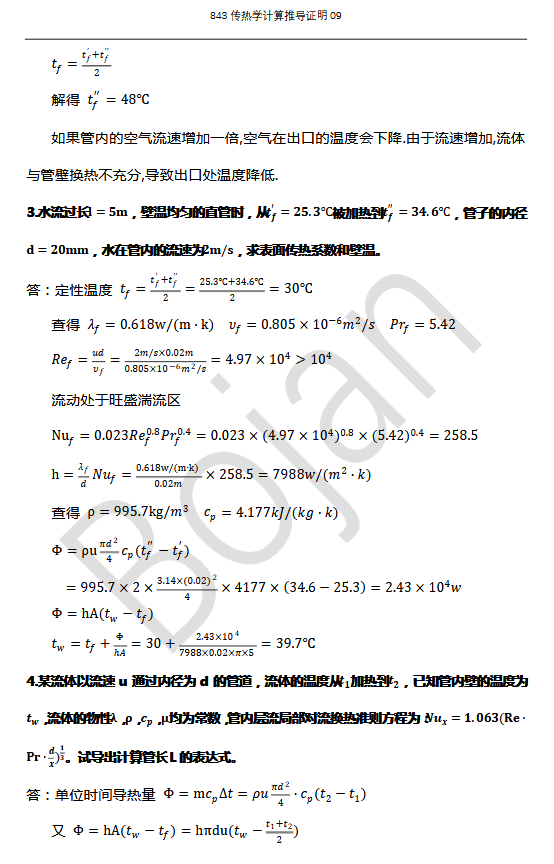 大连理工大学843传热学半岛在线注册历年真题汇总分类——计算推导证明(34)