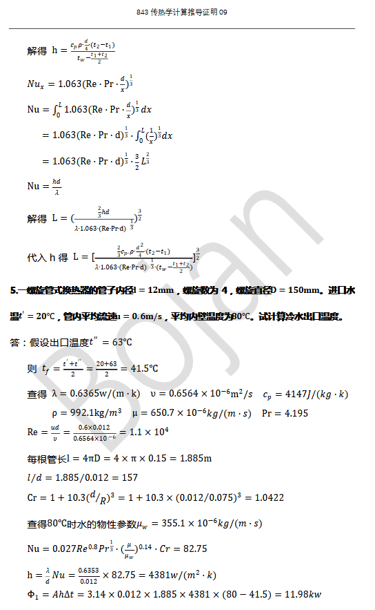 大连理工大学843传热学半岛在线注册历年真题汇总分类——计算推导证明(35)