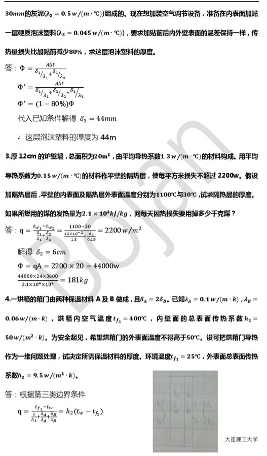 大连理工大学843传热学半岛在线注册历年真题汇总分类——计算推导证明(6)