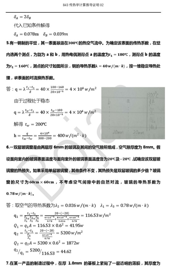 大连理工大学843传热学半岛在线注册历年真题汇总分类——计算推导证明(7)
