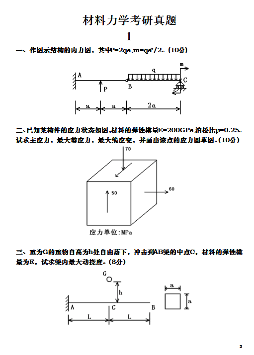 材料力学半岛在线注册真题十一套 汇集各个高校经典材料力学试题