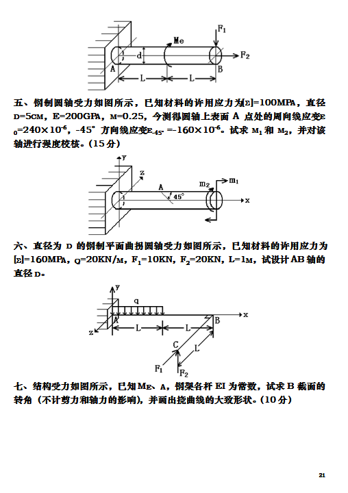 材料力学半岛在线注册真题十一套 汇集各个高校经典材料力学试题(20)