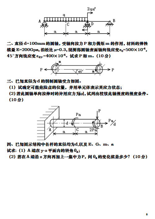 材料力学半岛在线注册真题十一套 汇集各个高校经典材料力学试题(4)