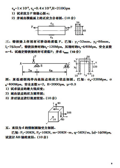 材料力学半岛在线注册真题十一套 汇集各个高校经典材料力学试题(8)