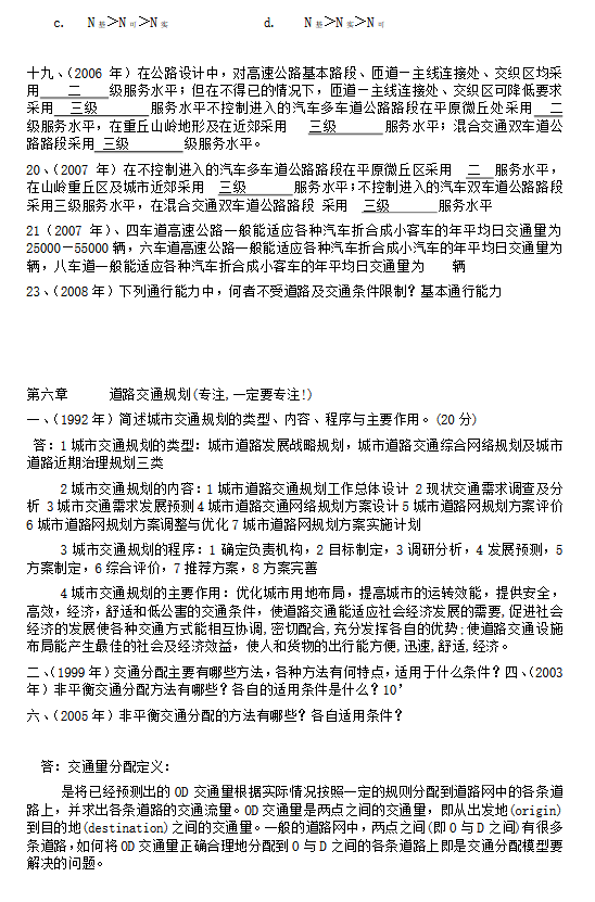 1、名词解释4分*5个(20分) 1. 可达性2.腹地3.运输链4.5.忘了 2、简答题(50分) 1. 交通预测四阶段10分 2. 欧氏距离、物流距离、运输距离10分 3. 多式联运定义及优点10分 4. 城市土地利用模型并举出两个模型例子10分 5. 运输成本构成及影响因素10分 3、论述题(40分) 1. ...