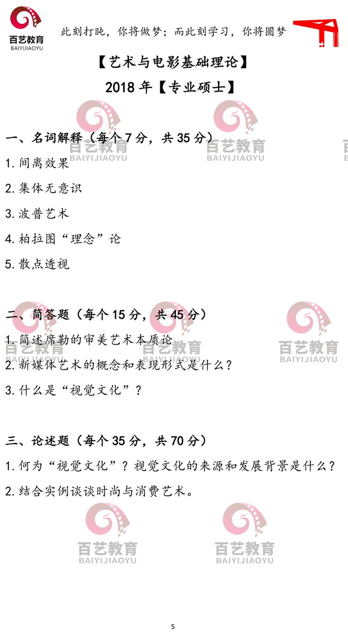 北京电影学院2015-2020艺术与电影基础理论专业一半岛在线注册真题(5)