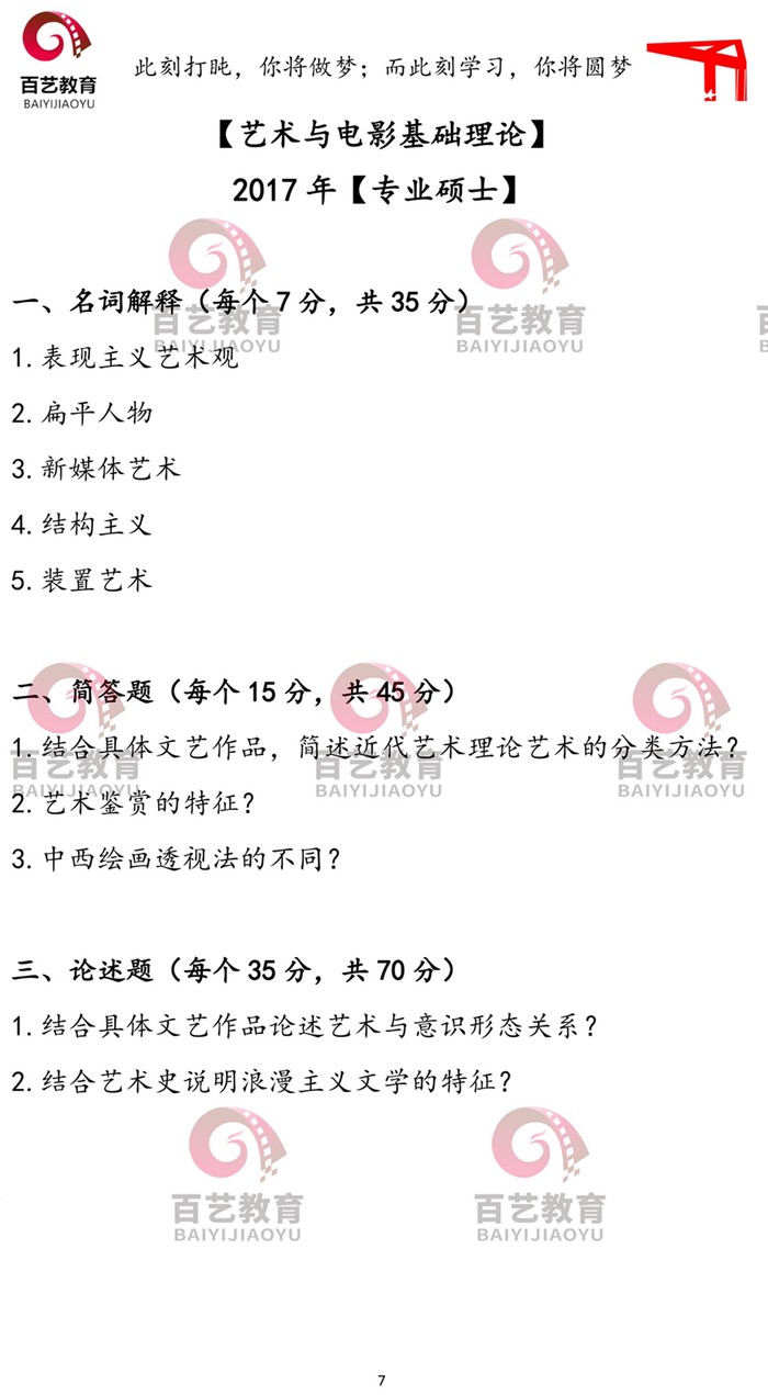 北京电影学院2015-2020艺术与电影基础理论专业一半岛在线注册真题(7)
