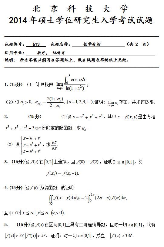 北京科技大学2003-2014半岛在线注册数学分析真题