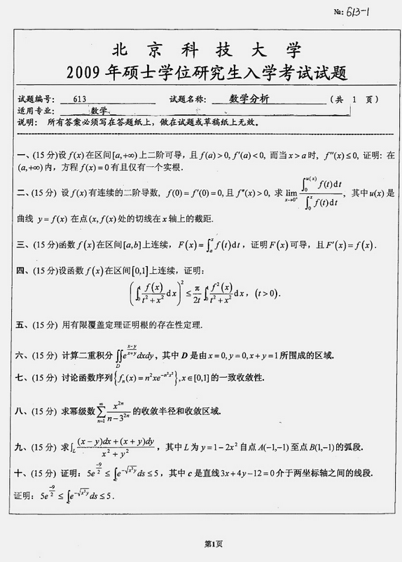 北京科技大学2003-2014半岛在线注册数学分析真题(10)