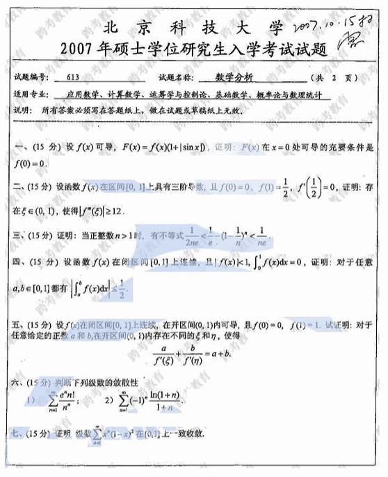 北京科技大学2003-2014半岛在线注册数学分析真题(14)