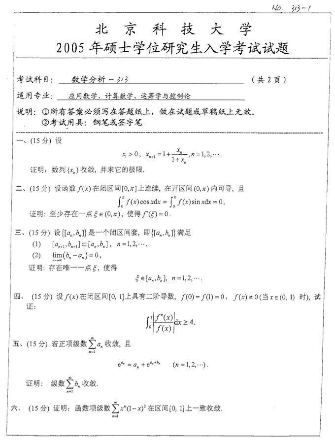 北京科技大学2003-2014半岛在线注册数学分析真题(18)