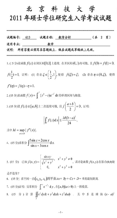 北京科技大学2003-2014半岛在线注册数学分析真题(8)