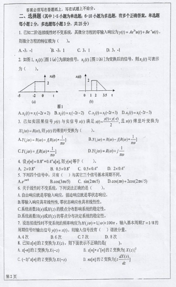2019四川大学信号与系统半岛在线注册专业课试卷(2)