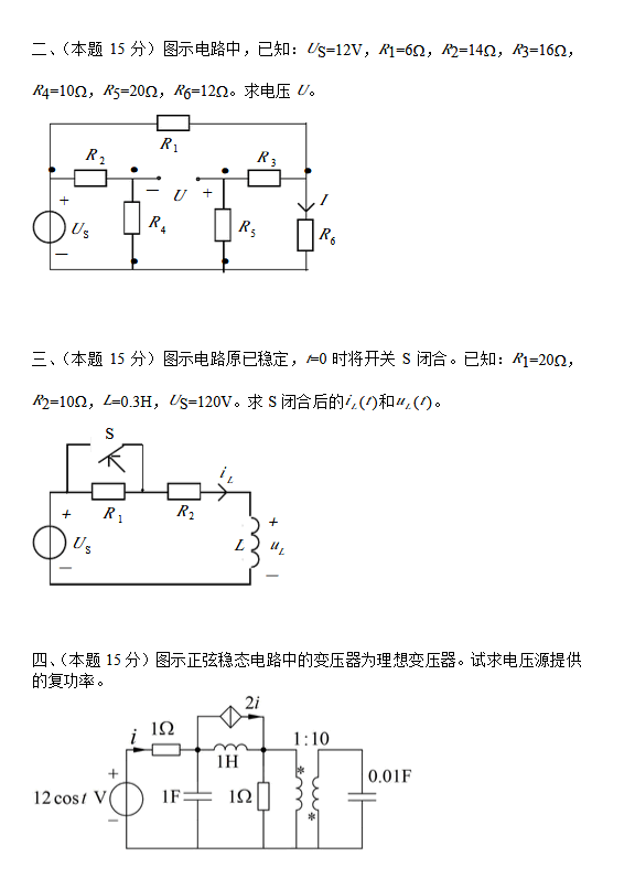 3道大题,第一题节点电压,第二题平均功率,第三题求平均功率,有效功率,复功率等