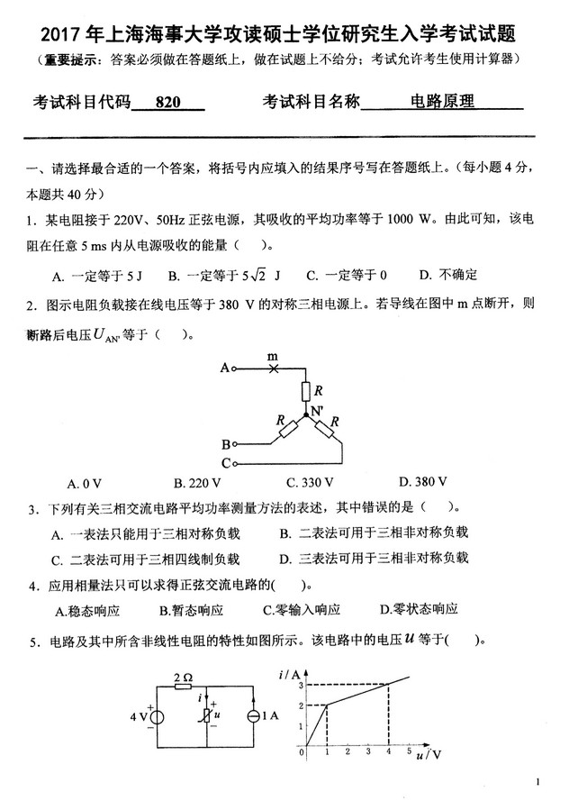 上海海事大学2018年2017年电路原理半岛在线注册专业课真题(8)