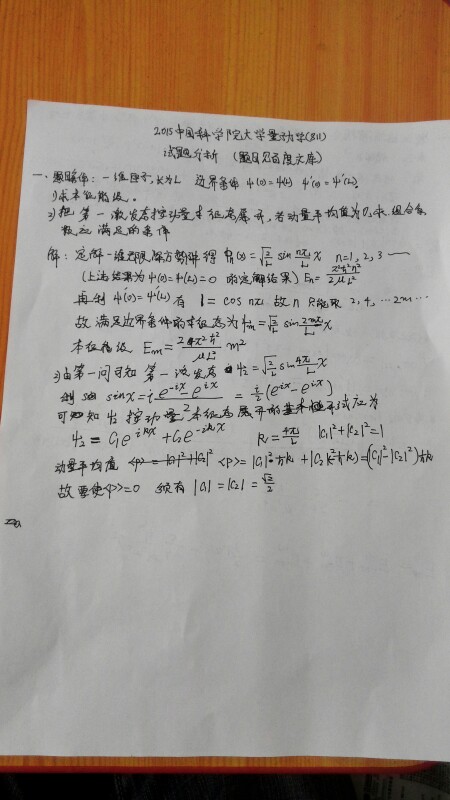 个人写的2015中科院量子力学答案,想与大伙交流一下
