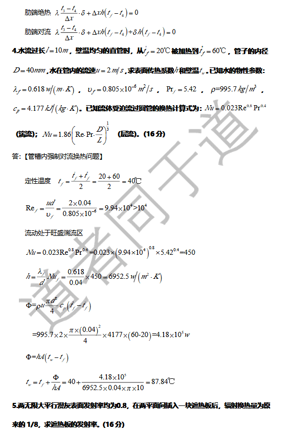 2017年大连理工大学843传热学半岛在线注册试题答案解析(5)