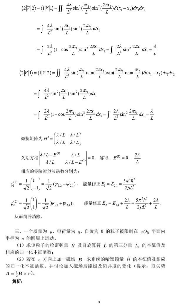 2014年中国科学院大学811量子力学半岛在线注册真题附带详细答案(3)