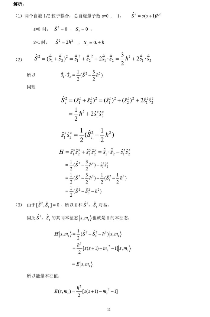 2017年中国科学院大学811量子力学半岛在线注册真题附带详细答案(11)