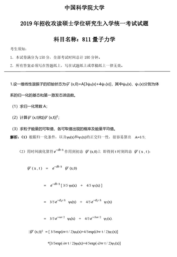 个人写的2015中科院量子力学答案,想与大伙交流一下