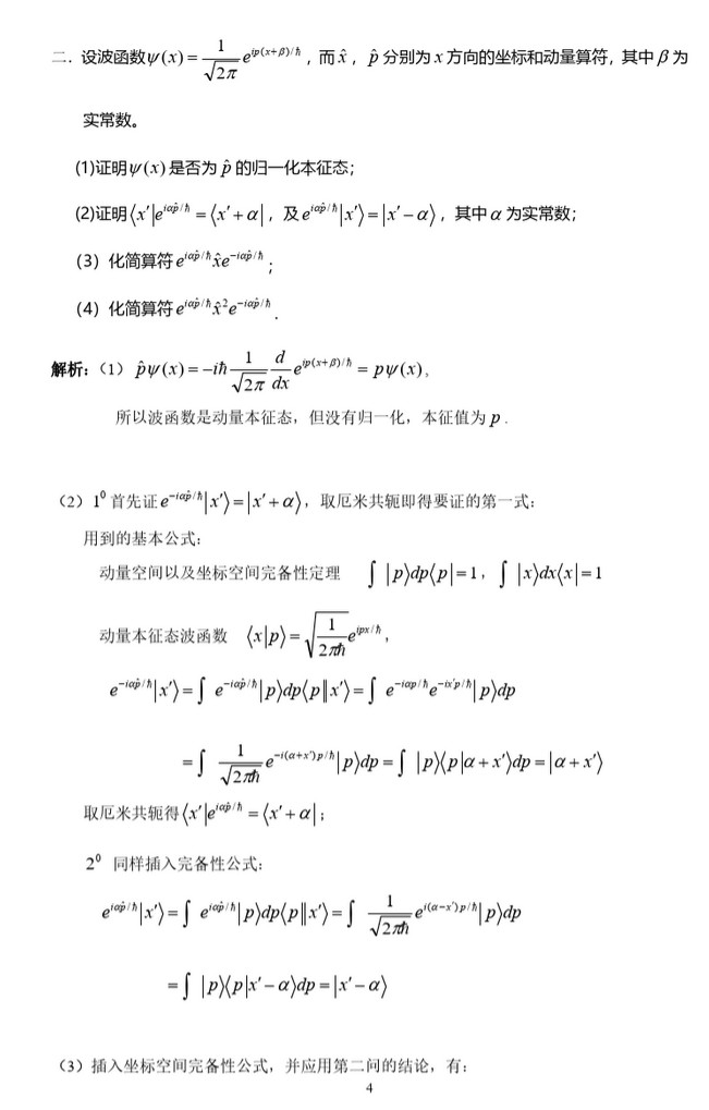 2020年中国科学院大学811量子力学半岛在线注册真题附带详细答案(4)