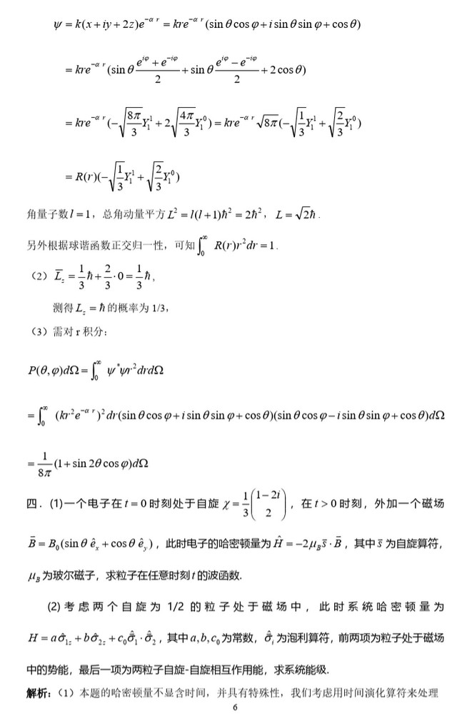 2020年中国科学院大学811量子力学半岛在线注册真题附带详细答案(6)