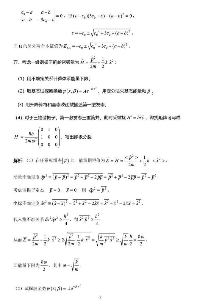 2020年中国科学院大学811量子力学半岛在线注册真题附带详细答案(9)