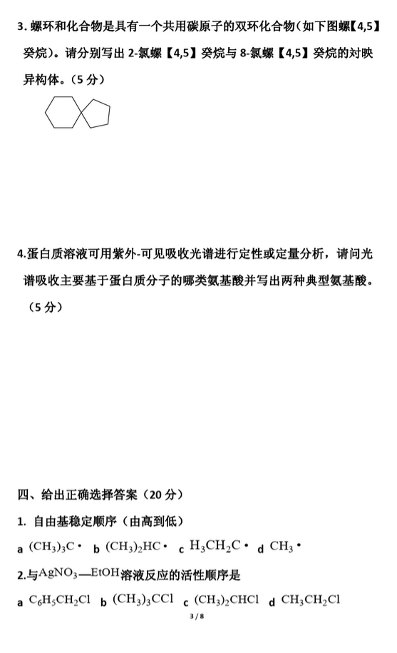 东北师范大学2008年有机化学半岛在线注册真题(3)