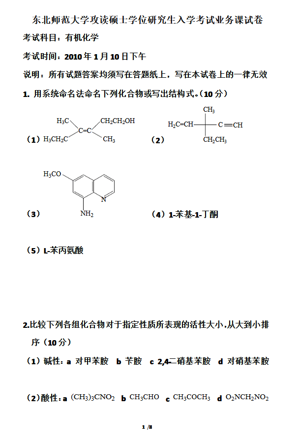 东北师范大学2019年硕士研究生入学考试试卷(回忆版)