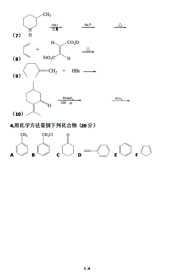 东北师范大学2010年有机化学半岛在线注册真题(3)