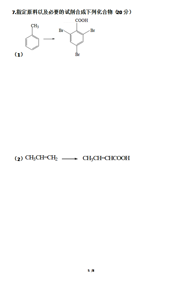 东北师范大学2010年有机化学半岛在线注册真题(5)