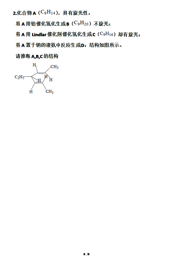 东北师范大学2011年有机化学半岛在线注册真题(8)