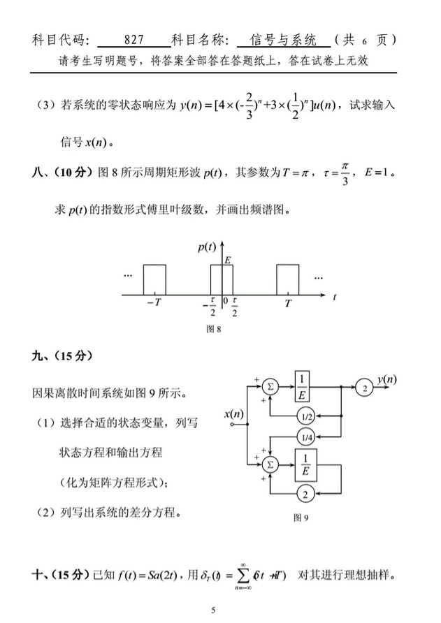 2011-2015年西北工业大学827信号与系统半岛在线注册真题(10)