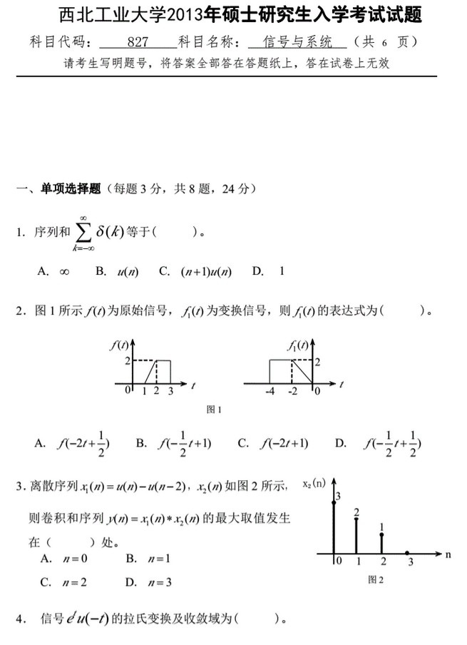 2011-2015年西北工业大学827信号与系统半岛在线注册真题(12)